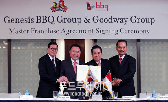 제너시스BBQ(회장 윤홍근)는 12일 조선호텔에서 인도네시아 리조트 전문그룹인 굿웨이그룹(Goodway, 회장 라디우스 위보우)과 마스터프랜차이즈 계약을 맺고 본격적으로 인도네시아에 진출한다고 밝혔다.