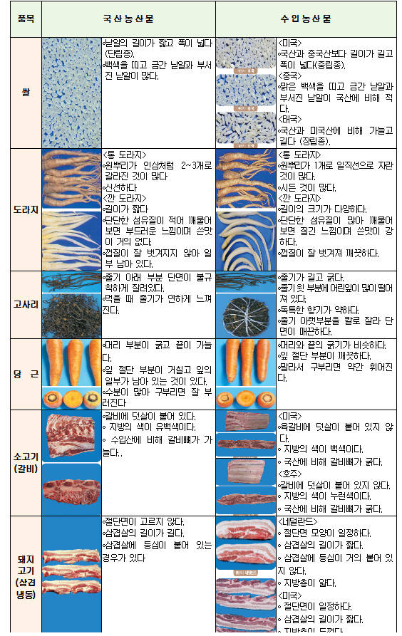 추석 제수․선물용 국산 농산물과 수입농산물 구별방법은?