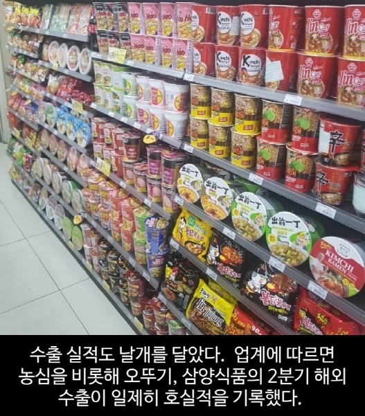 수출 실적에 날개를 달았다. 13일 업계에 따르면 농심을 비롯해 오뚜기, 삼양식품의 2분기 해외 수출이 일제히 호실적을 기록했다. 농심은 올 상반기 미국법인 매출이 전년 대비 35% 성장한 1억 6400만 달러를 기록했다. 이는 사상 최대치다.