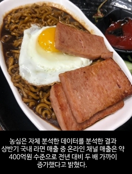 농심은 자체 분석한 데이터를 분석한 결과 올해 상반기 국내 라면 매출 중 온라인 채널 매출은 약 400억원 수준으로 전년 대비 두 배 가까이 증가했다고 밝혔다. 라면시장에서 전통강자는 더욱 빛을 발하며 신라면, 짜파게티, 안성탕면, 너구리 등에 쏠림현상이 나타났다.