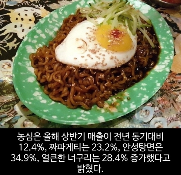 농심은 올해 상반기 매출이 전년 동기대비 12.4%, 짜파게티는 23.2%, 안성탕면은 34.9%, 얼큰한 너구리는 28.4% 증가했다고 밝혔다. 농심의 4대 대표 제품이 두 자릿수 성장률을 기록했다. 농심은 “5개 라면공장을 풀가동하고 생산품목을 조정하면서 수요에 적극 대응했다”고 말했다.
