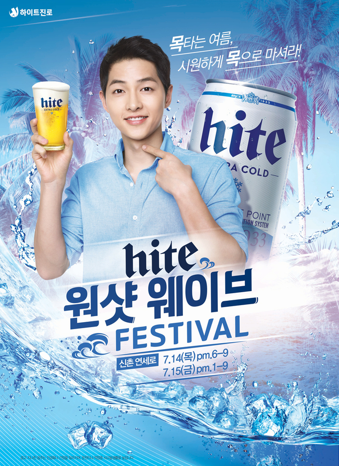 지난 14일에는 신촌 연세로 일대에서 모델 송중기와 함께하는'하이트 원샷 웨이브 페스티벌'을 개최했다.'하이트 원샷 웨이브 페스티벌'은 하이트의 새 여름광고 속의 테마를 활용한 것으로,도시를 넘어 바다로,신촌을 넘어 해운대까지 목타는 여름 시원하게 목으로 마시는'원샷엔 하이트'를 전달하며,다함께 하이트의 원샷 웨이브를 즐기자는 취지에서 기획됐다.