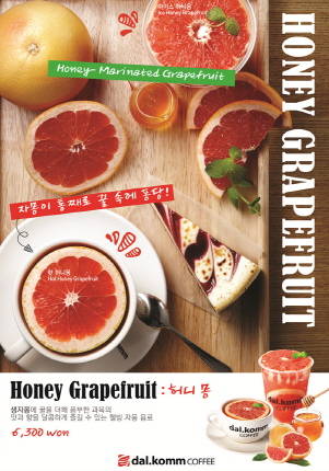 한진우 달.콤커피 한진우 본부장은 “자몽은 지방을 연소하고 분해하는 나라진이란 성분이 들어있어 저칼로리 다이어트 과일의 대명사로 반 개만 먹어도 하루에 필요한 비타민 C를 섭취할 수 있다”며 “무더위로 저하된 체력에 상큼한 활기를 불어 넣을 수 있도록 생자몽으로 만든 신메뉴 '허니몽'을 출시했다”고 전했다.