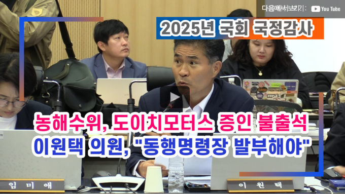 이 의원은 “이것은 명백한 의도적 회피라고 본다”며 “다음 종합감사 때 다시 증인으로 추가해 반드시 출석하도록 해야 한다. 국회는 동행명령장을 발부해 책임 있는 답변을 받아야 한다”고 강조했다.