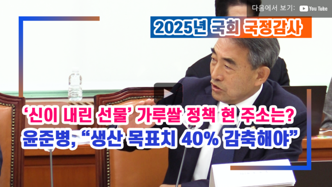 이어 윤 의원은 “판매·수요 기반 확보 없이 오로지 생산만 독려한 윤석열 정부와 정황근 전 장관에게 실패한 가루쌀 정책에 대한 책임을 엄중히 물어야 한다”며 “농림축산식품부는 실패가 예견되었던 가루쌀 정책을 재점검하고, 농업인의 피해를 최소화하고 실질적인 시장 수요를 기반으로 하는 지속가능한 정책으로 근본적인 대전환에 나서야 한다”고 강조했다.