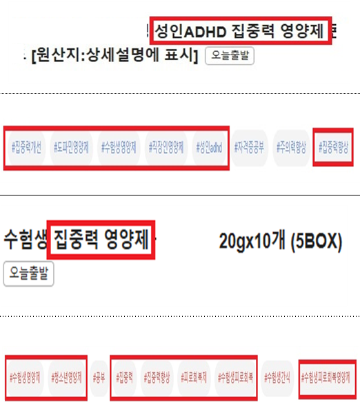 참고로 온라인에서 불법판매·알선·광고 제품들은 출처가 불분명할 뿐만 아니라, 위조 의약품일 가능성이 크므로 절대로 구매해서는 안 된다. 특히 ‘메틸페니데이트’ 제품은 마약류 성분의 전문의약품으로 소비자는 반드시 의사의 처방을 받아 복용하고 오남용하지 않도록 각별히 주의해야 한다.