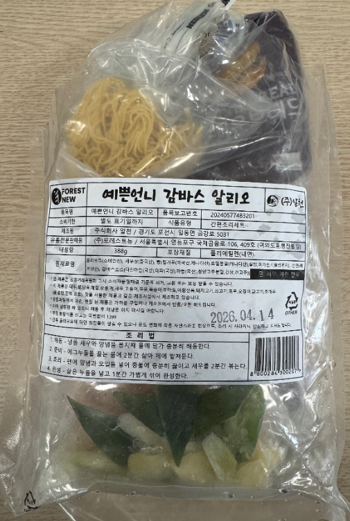 [푸드투데이 = 황인선기자] 식품의약품안전처(처장 오유경)는 식품제조가공업소인 '알천(경기도 포천시)'가 제조하고 유통전문판매업소인 '주식회사 포레스트뉴(서울특별시 영등포구)'가 판매한 ‘예쁜언니 감바스 올리오'(식품유형: 간편조리세트)'이 '세균수 기준 규격 부적합’으로 확인돼 판매 중단 및 회수조치 중이라고 11일 밝혔다.