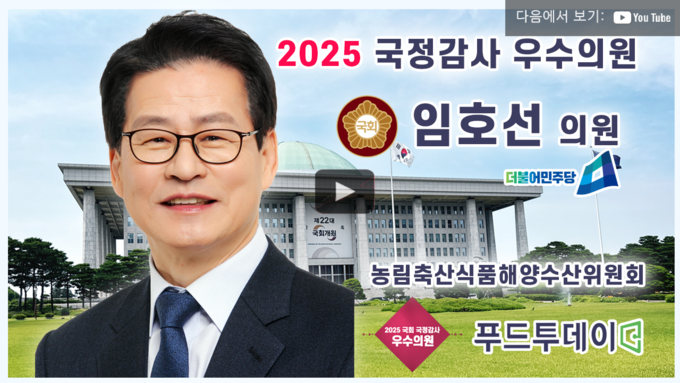 [푸드투데이 = 황인선.노태영 기자] 푸드투데이(대표 황창연)는 창간 이후 23년간 대한민국 먹거리와 식량안보를 책임지는 농림축산식품해양수산위원회(농해수위)와 보건복지위원회(복지위)를 중심으로 해마다 ‘국정감사 우수의원’을 선정해왔다.