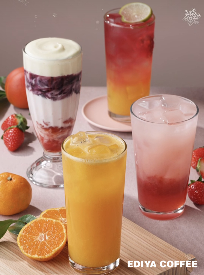 가장 큰 인기를 끌고 있는 메뉴는 ‘생과일 제주 감귤주스’다. 제주산 감귤을 그대로 갈아 만든 신선한 맛이 강점으로, 매 여름철 호응을 얻었던 생과일 수박주스·생과일 토마토주스의 인기를 이어가며 ‘시즌 생과일 주스 브랜드’ 이미지를 강화하고 있다. 새롭게 출시된 ‘치즈폼 딸기라떼’와 ‘딸기 자두 요구르트’ 역시 달콤·상큼한 겨울 과일의 조합으로 고객 접점을 더 넓혀가며 호응을 얻고 있다.
