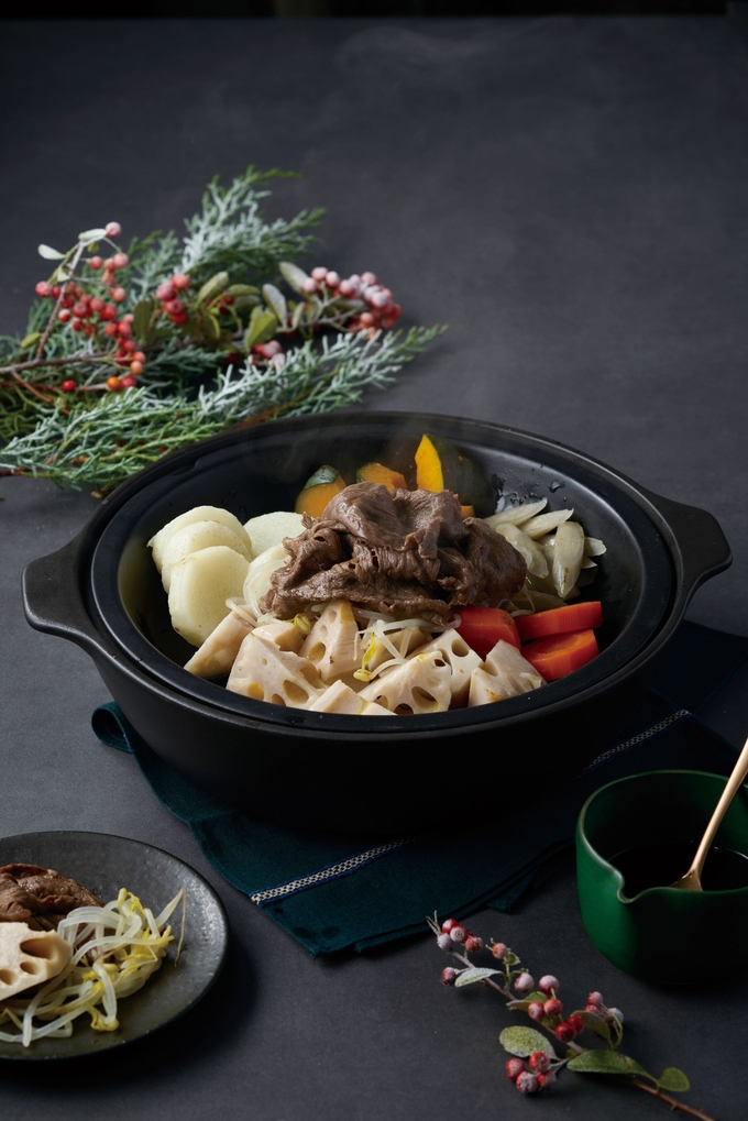 연근·우엉·당근·마 등 뿌리채소는 체온 유지와 영양 보충에 도움을 주는 겨울철 대표 식재료로 다양한 영양 성분을 지닌 한우를 더해 찜으로 조리하면, 재료 본연의 맛과 영양을 고스란히 살린 겨울철 별미가 된다.