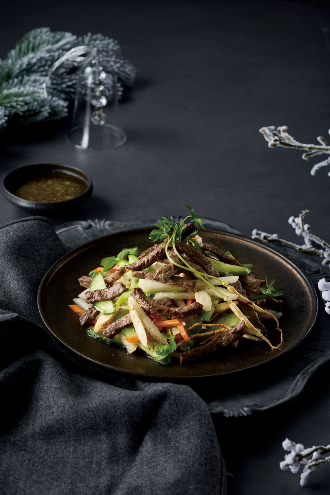인삼 특유의 향과 고소한 한우에 상큼한 드레싱이 더해져, 가볍지만 영양은 든든한 겨울 보양 샐러드된다.