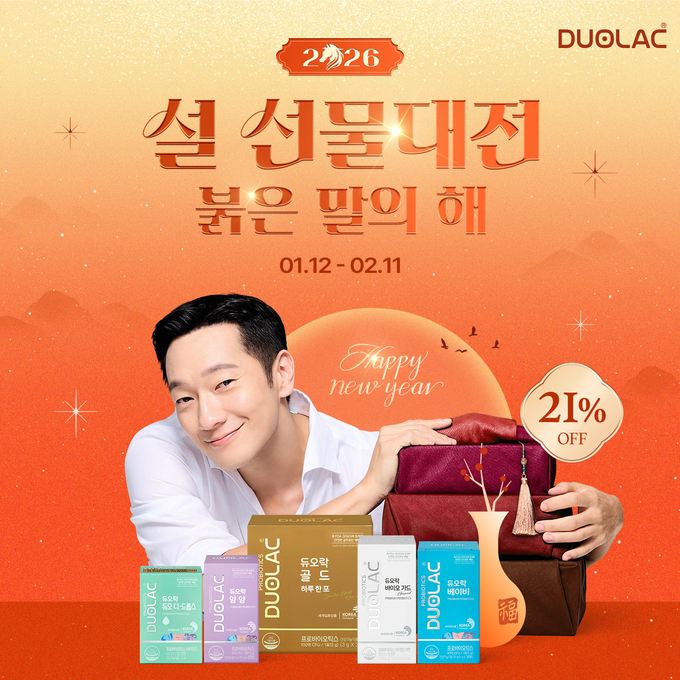 [푸드투데이 = 황인선기자] 쎌바이오텍의 221배 강한 유산균 ‘듀오락(DUOLAC)’이 2026년 설 명절을 맞아 ‘2026 듀오락 설 선물대전’을 실시한다. 이번 행사는 12일부터 내달 11일까지 한 달간 진행되며, 새해 건강을 기원하는 설 선물 수요를 겨냥해 풍성한 할인과 다양한 혜택을 마련했다.
