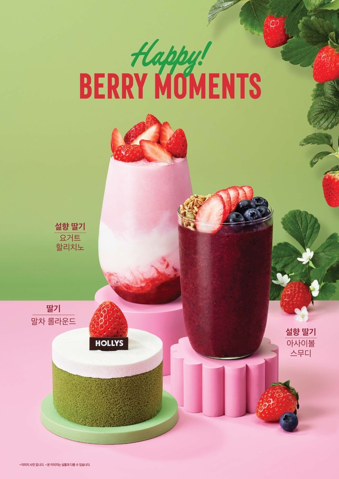 ‘설향 딸기 아사이볼 스무디’는 슈퍼푸드로 각광받는 아사이베리에 블루베리, 사과를 함께 갈아 만든 아사이볼 스무디에 설향 딸기를 얹어 상큼달콤한 맛을 끌어올렸다. 여기에 수제 그래놀라와 블루베리를 토핑으로 더해 식감까지 잡았다. ‘설향 딸기 요거트 할리치노’는 꾸덕꾸덕한 식감의 요거트를 넣어 진한 요거트의 풍미가 돋보이는 할리치노다. 여기에, 딸기 리플잼과 생딸기 슬라이스를 더해 풍부한 맛의 조화를 느낄 수 있다. 글로벌 트렌드로 자리잡은 말차도 빠질 수 없다. ‘딸기 말차 롤라운드’는 쌉싸름한 매력의 말차 케이크 위에 부드러운 생크림과 달콤한 설향 딸기를 얹어 색다른 맛을 완성했다.