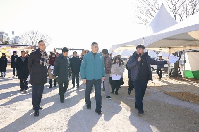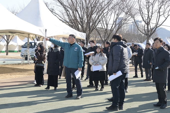 이날 점검에는 최원철 시장과 송무경 부시장, 관광과 및 산림자원과를 비롯해 관련 부서장과 박람회 총감독, 축제 관계자 등이 참석해 행사장 구성과 동선 배치, 무대 및 시설물 안전관리, 화로·그릴 등 화기 사용 안전, 관람객 편의시설 운영, 한파 대비 보온 대책, 주요 프로그램 운영 동선 등을 중심 체크했으며, 최원철 시장은 “알밤과 닭꼬치, 소시지 등을 구워 먹는 대형 화로와 그릴을 운영하는 만큼, 화재 및 안전사고 예방에 각별히 신경 써야 한다”고 강조했다.