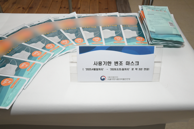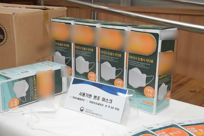 이후 2025년 1월부터 같은 해 2월까지 해당 임대창고에서 보건용 마스크 포장에 기재된 사용기한 등을 약품을 사용해 지운 뒤, 사용기한을 “2028.3.25.일 까지”로 연장해 다시 기재하는 방식으로 약 3년간 사용기한을 연장‧변조한 후 시중에 유통한 것으로 드러났다.