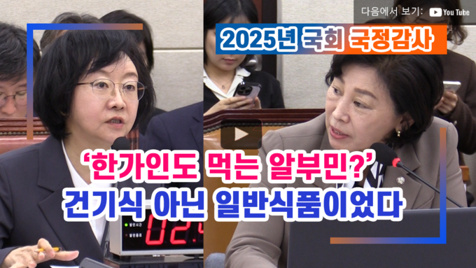 21일 서울 여의도 국회에서 열린 보건복지위원회(위원장 박주민)의 식품의약품안전처(처장 오유경) 국정감사에서 더불어민주당 남인순 의원(서울 송파병)은 “‘한가인도 챙겨먹는 알부민’ 등으로 광고되는 제품들은 의약품이 아니라 단순 가공식품임에도 소비자는 마치 의약품이나 건강기능식품으로 오인하고 있다”며 “소비자 기만이 심각한 수준”이라고 지적했다.