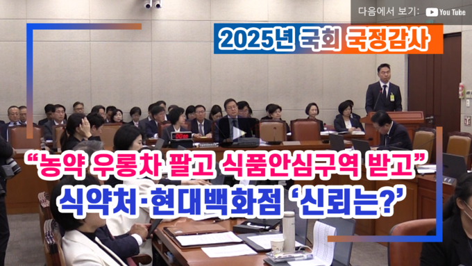 21일 서울 여의도 국회에서 열린 보건복지위원회(위원장 박주민)의 식품의약품안전처(처장 오유경) 국정감사에서는 현대백화점 중동점의 ‘농약 우롱차’ 판매 사건을 두고 백화점의 관리 부실과 식약처의 안이한 행정 모두가 도마 위에 올랐다.