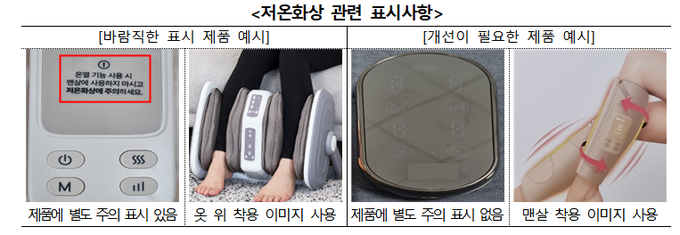 먼저 맨살에 직접 사용하는 것을 피하고, 제품별 권장 사용 시간을 준수해 30분 이상 연속 사용하지 말 것을 당부했다.