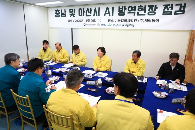 이번 점검은 경기도 화성시와 평택시 산란계 농장에서 고병원성 조류인플루엔자가 발생함에 따라 인접한 충남도의 방역 추진사항을 점검하기 위해 진행됐으며, 이날 충남도는 관내 산란계 밀집지역과 대규모 산란계 농가에 대한 방역대책 추진사항을, 아산시는 농가 차단방역 및 철새도래지 관리방안에 대해 설명했다.
