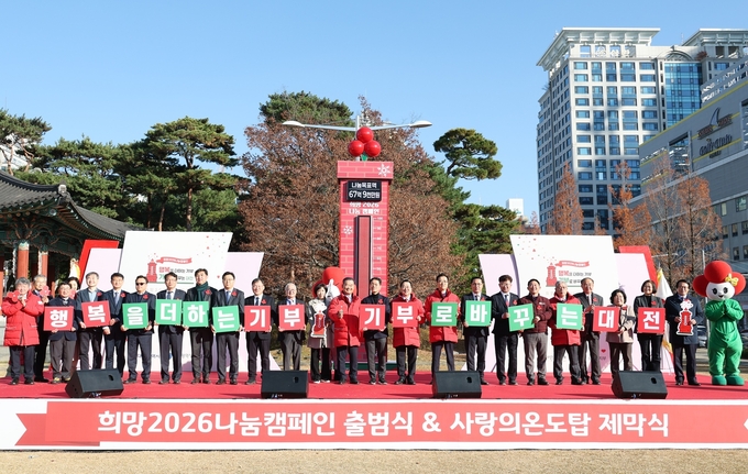 대전시(시장 이장우)와 대전사회복지공동모금회는 같은 날 시청 남문광장에서 출범식과 사랑의 온도탑 제막식을 열고 67억 9,000만 원을 목표로 집중 모금에 돌입했다. 캠페인은 내년 1월 31일까지 운영된다.