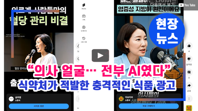 [푸드투데이 = 황인선.노태기자] 식품의약품안전처(처장 오유경)가 AI로 생성한 의사·전문가 영상을 활용하거나, 일반식품을 의약품처럼 오인·혼동하게 만든 온라인 식품 부당광고에 대해 대대적인 단속에 나섰다.