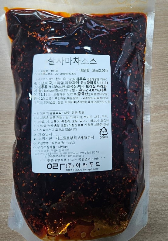 [푸드투데이 = 황인선기자] 식품의약품안전처(처장 오유경)는 식품제조·가공업체 아라푸드(경기도 평택시)가 제조·판매한 ‘살사마차소스(식품유형: 향미유)’에서 벤조피렌이 기준치를 초과해 검출돼 해당 제품의 판매를 즉시 중단하고 회수 조치를 실시했다고 23일 밝혔다.