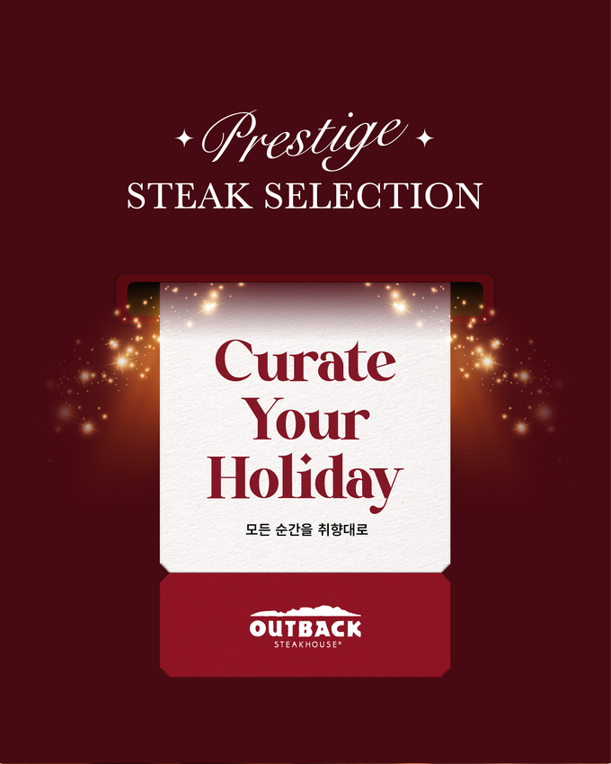 [푸드투데이 = 황인선기자] 다이닝브랜즈그룹의 캐주얼 다이닝 레스토랑 아웃백 스테이크하우스(이하 아웃백)가 신메뉴 ‘프레스티지 스테이크 셀렉션’ 구매 고객을 대상으로 5성급 호텔 숙박 경품 혜택을 제공하는 ‘Curate Your Holiday(큐레이트 유어 홀리데이)’ 프로모션을 진행한다.