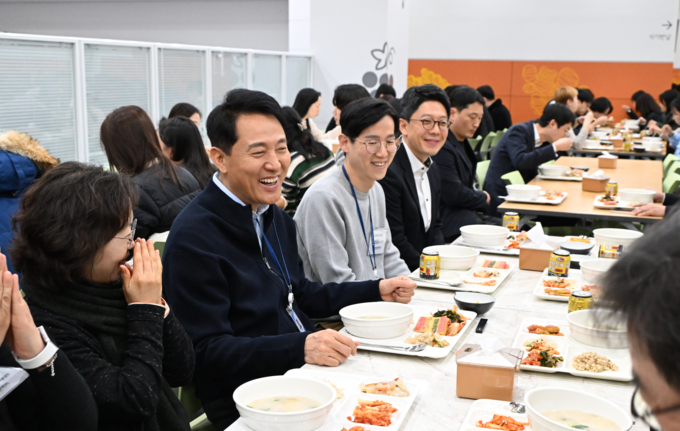이날 메뉴는 현미떡국과 현미밥을 비롯해 오색전, 제로식혜 등으로 구성된 저당 건강식단으로 시는 더 건강한 서울9988의 일환으로 직원 구내식당에서도 흰쌀밥 대신 잡곡밥을 선택할 수 있도록 하고 일주일 중 하루는 해산물과 채소로 이루어진 서울미래밥상을 운영하고 있으며, 오 시장은 “지난해 각자의 자리에서 시민을 위해 묵묵히 애써주시는 직원 여러분들께 감사를 드린다”며 “여러분 한 분 한 분의 노력이 서울시민의 삶을 한 단계 끌어올리고 ‘세계도시 서울’을 만들어간다는 점을 잊지 말아달라”고 격려했다.