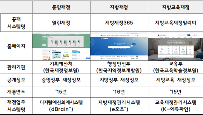 아울러 현재는 공급자 입장에서 중앙재정(열린재정), 지방재정(지방재정365), 지방교육재정(지방교육재정알리미) 정보들이 분절적으로 관리, 제공되어, 일반국민 입장에서는 이용하기 불편하다는 지적이 계속 제기된 가운데 수요자 입장에서 중앙, 지방, 지방교육 재정정보들을 모두의 재정 한 곳에 통합 관리, 제공해 누구나 각종 재정정보에 편리하게 접근하여 원스톱으로 가공·활용할 수 있도록 지원할 계획이라고 기획처는 전했다.