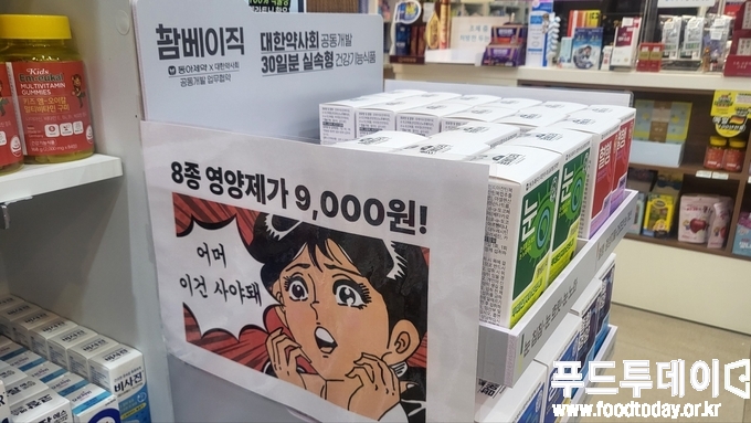 판매대에는 ‘약국에서 만나는 합리적 건강기준’, ‘8종 영양제가 9,000원’ 등의 문구가 부착돼 있다. 가성비를 중시하는 젊은 층과 실속형 구매 성향을 겨냥해 유통 채널 간 경쟁이 심화되는 상황에서 약국의 존재감을 다시 부각하겠다는 전략이 읽힌다.