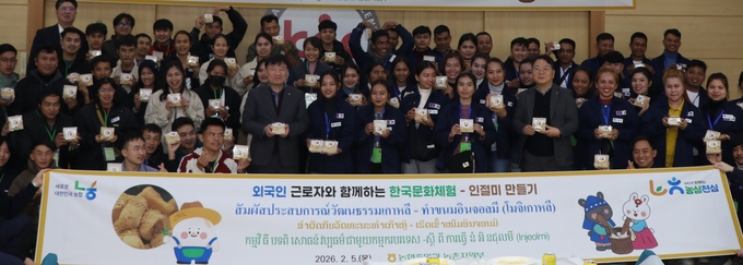 [푸드투데이 = 황인선기자] 농협중앙회(회장 강호동)는 경기 이천시 한국생산성본부에서 태국·캄보디아·라오스 국적의 외국인 근로자 100여 명을 대상으로 설맞이 외국인 근로자 입국 환영 행사를 개최했다고 6일 밝혔다.