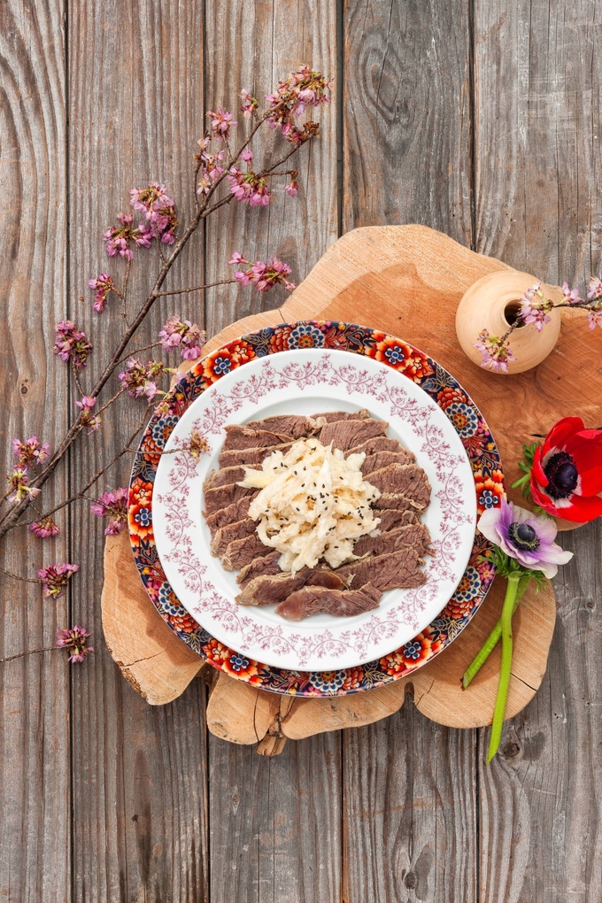 기름진 명절 음식이 부담스럽거나 깔끔하면서도 품격 있는 상차림을 고민하고 있다면, 담백한 한우 사태에 향긋한 더덕을 곁들인 한우 사태 더덕냉채가 제격이다.