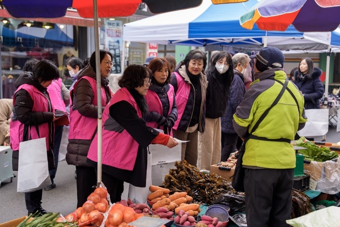 이재영 군수은 이날 장보기 행사에서 상인들의 애로사항을 직접 청취하고, 물가동향 등 현장 분위기를 살피는 한편 시장 운영과 관련한 현안도 점검했다.