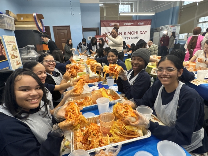 [푸드투데이 = 노태영기자] 농림축산식품부(장관 송미령, 이하 농식품부)와 한국농수산식품유통공사(사장 홍문표, 이하 aT)는 현지시각 10일 뉴욕 맨해튼에 위치한 공립 고등학교에서 학생과 교직원 약 100명이 참가한 가운데 김치담그기 체험과 K-푸드 급식 행사를 개최했다고 18일 밝혔다.