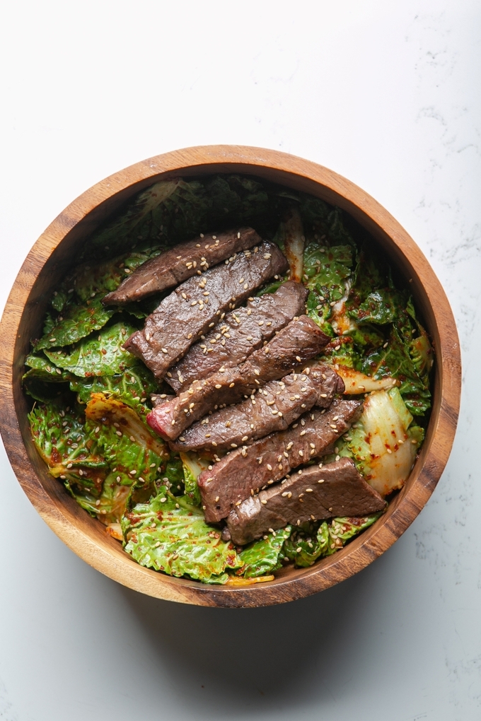 겨울을 견디고 자란 봄동은 일반 배추보다 비타민 C와 무기질이 풍부해 계절 식단에 활용하기 좋은 채소로, 아삭한 식감과 달큰한 맛이 특징이며, 찰떡궁합으로 육즙이 풍부하고 쫄깃한 식감의 한우 치마살을 곁들이면 맛과 영양의 균형을 동시에 잡을 수 있다.