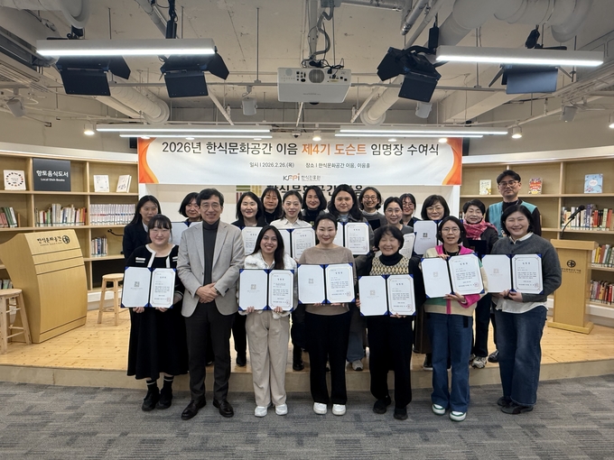 [푸드투데이 = 노태영기자] 한식진흥원(이사장 이규민)은 제4기 도슨트 임명장 수여식을 개최하고, 2026년 한식문화공간 이음 전시 해설 프로그램을 담당할 도슨트 25명을 공식 임명했다고 9일 밝혔다.