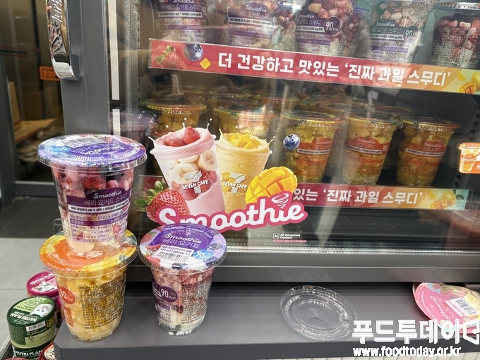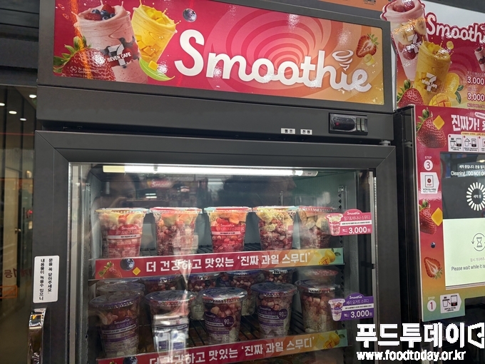 [푸드투데이 = 조성윤기자] 13일 오후 서울시 강남구 역삼동 소재의 세븐일레븐 뉴웨이브 역삼점은 스무디를 마시려는 젊은 여성들과 김과 라면, 과자등을 구매하려는 외국인들로 북적였다. 세븐일레븐은 일본에서 큰 인기를 끌고 있는 '즉석 스무디'를 국내에 도입했다.
