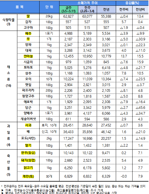 박정훈 농식품부 식량정책실장은 “중동 상황 등을 면밀히 모니터링하면서 농식품 수급과 가격 상황을 철저히 관리해 국민이 체감하는 물가 부담이 완화될 수 있도록 최선을 다하겠다”라고 전했다.