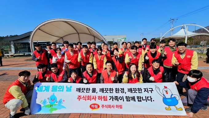 하림은 지난 2016년 임직원들로 구성된 ‘하림 행복나눔 봉사단’을 창설하고 해마다 세계 물의 날에는 수자원 보전 활동을 펼치며 물의 중요성을 알리는 캠페인에 참여하고 있다. 또한 매년 사업장 인근 하천 정화 활동, 사업장에서의 수자원 절감 노력 등 임직원과 지역 사회가 함께하는 다양한 봉사활동을 확대해 오고 있다.