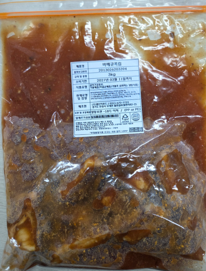 [푸드투데이 = 황인선기자] 식품의약품안전처(처장 오유경)는 축산물가공업체(식육가공업)인 '엠브이푸드' 자가품질검사 결과, 해당업체에서 제조한 '바베큐 폭립(유형: 갈비가공품)'에서 보존료가 검출돼 판매 중단 및 회수 조치 중이라고 10일 밝혔다.