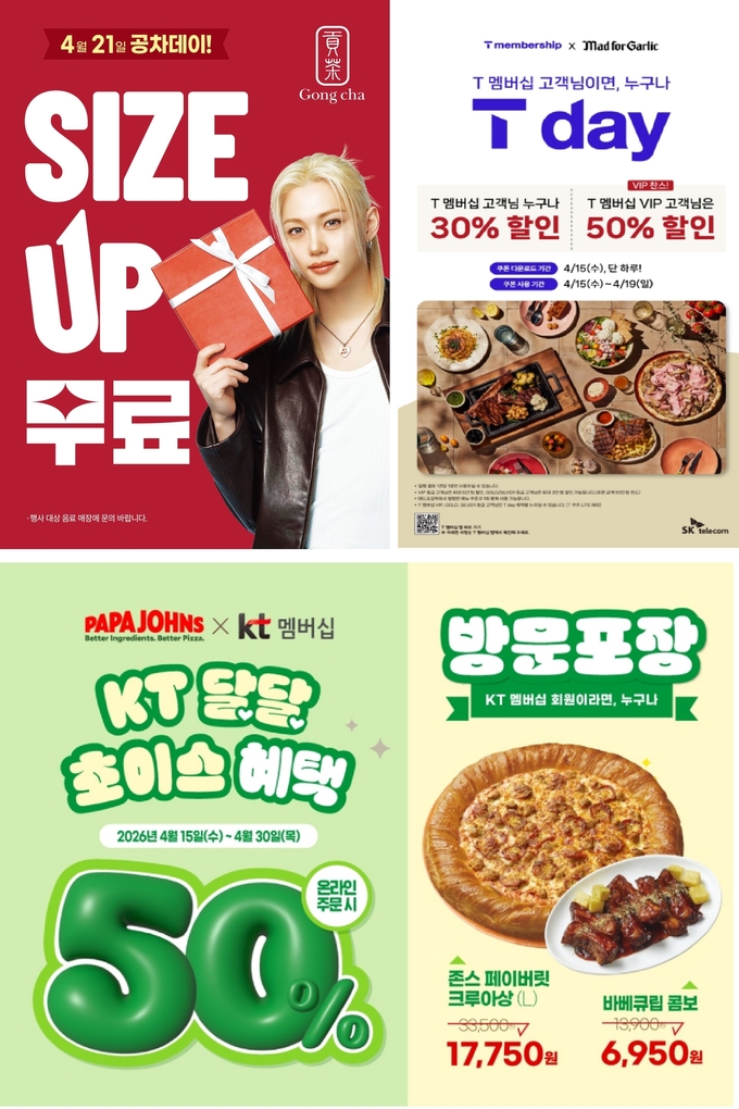 외식 레스토랑 업계도 통신사 멤버십 연계 할인에 가세했다. 매드포갈릭은 SK텔레콤 T멤버십 고객 대상 ‘T day’ 프로모션을 통해 VIP 고객 50%, GOLD·SILVER 고객 30% 할인 혜택을 제공한다. 할인은 최대 10만 원 한도 내에서 적용되며, 쿠폰은 발급일 포함 5일간 사용할 수 있다.