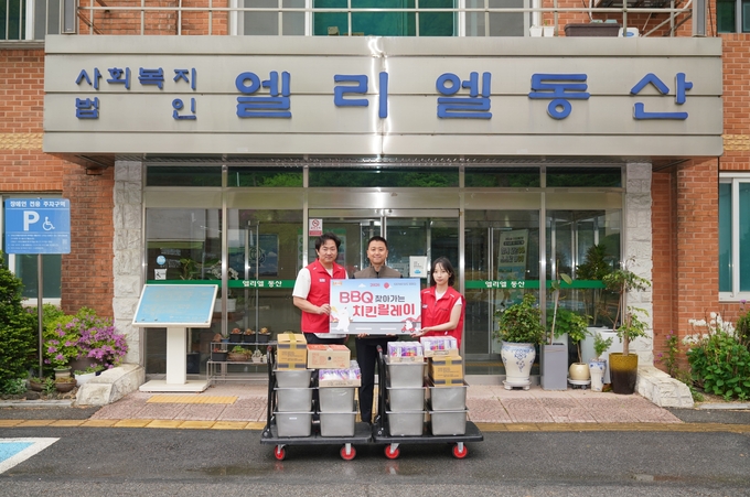 BBQ는 찾아가는 치킨릴레이의 일환으로 경기도 이천에 위치한 엘리엘동산을 방문해 황금올리브 닭다리, 핫윙, 크런치 순살크래커, 치즈볼, 레몬보이로 구성된 메뉴 총 100인분을 전달했다고 21일 밝혔다.