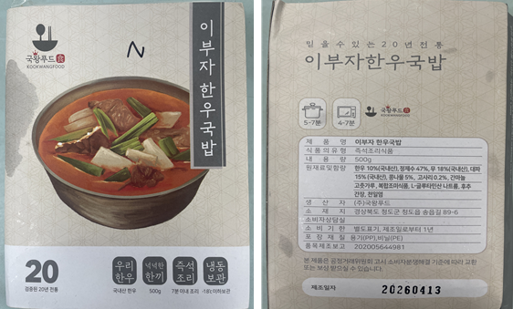 식품의약품안전처(처장 오유경)는 식품제조·가공업체 주식회사 국왕푸드(경북 청도군)가 제조·판매한 ‘이부자 한우국밥(즉석조리식품)’에서 살모넬라균이 검출돼 판매 중단 및 회수 조치를 시행한다고 28일 밝혔다.