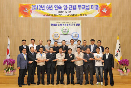 남양유업이 임금과 단체협상을 6년 연속 무교섭 타결했다. 남양유업은 지난달 31일 오후 3시 공주공장 대강당에서 이원구 경영지원본부장과 이형섭 노동조합 위원장, 임직원이 참석한 가운데 2012년 임금과 단체협상을 무교섭으로 타결하는 협약식을 가졌다고 1일 밝혔다.