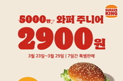 [푸드투데이 = 조성윤기자] 버거킹이 대표 메뉴인 ‘와퍼주니어’ 라인업을 합리적인 가격에 즐길 수 있는 최대 42%의 할인 프로모션을 진행한다. 이번 프로모션은 오는 29일까지 진행되며, 매장 방문 고객을 대상으로 ▲와퍼주니어 ▲불고기와퍼주니어 ▲치즈와퍼주니어 ▲콰트로치즈와퍼주니어 등 총 4종의 메뉴를 할인된 가격에 판매한다. 특히 기존 와퍼주니어 3종으로 진행되던 할인 행사에 콰트로치즈와퍼주니어가 새롭게 추가되며 메뉴 선택 폭을 넓혔다. 이를 통해 고객들은 취향에 따라 다양한 와퍼주니어 메뉴를 부담 없는 가격에 즐길 수 있다. 행사 기간 동안 와퍼주니어와 불고기와퍼주니어는 기존가 5,000원에서 42% 할인된 2,900원에 제공된다. 치즈와퍼주니어는 기존 5,300원에서 약 39% 할인된 3,200원, 콰트로치즈와퍼주니어는 기존 5,600원에서 약 37% 할인된 3,500원에 만나볼 수 있다. 콰트로치즈와퍼주니어는 단품뿐 아니라 세트와 라지세트도 각각 6,000원과 6,700원에 이용 가능하다. 와퍼주니어는 버거킹의 시그니처인 직화 방식으로 구운 100% 순 쇠고기 패티와 신선한 채소가 어우러진 메뉴로, 부담 없이 즐기기 좋은 사이즈와 균형 잡힌 맛으로 꾸