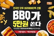 [푸드투데이 = 노태영기자] 치킨 프랜차이즈 제너시스BBQ 그룹(회장 윤홍근)이 출시한 뿜치킹이 인기에 힘입어 오는 30일까지 BBQ앱 및 웹사이트를 통해 뿜치킹을 포함한 치킨을 주문하는 모든 고객에게 인기 사이드 메뉴 7종을 담은 5만원 버라이어티 쿠폰팩을 제공한다고 18일 밝혔다. 이번 쿠폰팩에는 뿜치킹콘립, 모둠감자튀김, 랜덤치즈볼(10알), BBQ 고추킹, BBQ 떡볶이, 통새우 멘보샤, BBQ 소떡 증정 쿠폰이 1장씩 포함되며, 쿠폰은 프로모션 기간 동안 BBQ앱 회원 전원에게 발급되며 주문 1회 당 쿠폰 1장씩 사용 가능하다. 5만원 버라이어티 쿠폰팩은 지난 8,9월에도 진행된 프로모션으로, 행사 기간 동안 소비자들의 많은 인기를 끌며 앵콜 문의가 이어졌다고 BBQ는 설명했다. BBQ 관계자는 “해당 프로모션에 대한 고객들의 사랑에 대한 감사함을 담아 다시 한번 준비하게 됐다”며 “11월에도 푸짐한 쿠폰팩과 함께 BBQ치킨을 즐기시길 바라며, 앞으로도 자사앱을 통해 실질적 혜택을 제공할 수 있도록 노력하겠다”고 전했다.