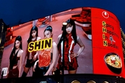 [푸드투데이 = 조성윤기자] 농심은 지난 22일부터 28일까지 7일간, 영국 런던의 대표적인 랜드마크인 ‘피카딜리 서커스(Piccadilly Circus)’ 광장에 초대형 신라면 광고를 내걸고, 신라면 현장 프로모션을 펼친다. 올해 3월 네덜란드에 유럽법인을 설립한 농심은 런던의 심장부를 파고드는 공격적인 마케팅으로 유럽 내 존재감을 빠르게 키운다는 계획이다. 런던 피카딜리 서커스는 뉴욕의 타임스퀘어와 더불어 세계 최고의 옥외광고 거리이자 연간 6천만 명에 달하는 유동인구가 몰리는 런던 소비문화의 중심지로, 글로벌 기업들의 홍보 격전지로 손꼽힌다. 특히 광장의 상징인 초대형 디지털 옥외광고판 ‘피카딜리 라이트(Piccadilly Lights)’는 코카콜라, 삼성 등 글로벌 톱 브랜드들이 광고하는 미디어다. 이번 캠페인을 통해 농심은 신라면이 ‘글로벌 No. 1 브랜드’로 도약하기 위한 첫 발을 내디뎠다는 평가를 받고 있다. 농심은 건물 전체를 덮는 초대형 피카딜리 라이트를 통해 지난 11월 공개한 신라면 글로벌 엠버서더 ‘에스파’ 출연 뮤직비디오 광고와, ‘케이팝 데몬 헌터스’와 협업한 신라면 애니메이션 광고를 함께 광고를 송출한다. 또한, 광장 현장에서 소