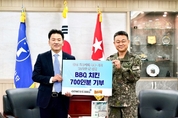 [푸드투데이 = 노태영기자] 치킨 프랜차이즈 제너시스BBQ 그룹(회장 윤홍근)이 국군의 날을 맞아 세종시에 위치한 육군 제32보병사단에 방문해 황금올리브 닭다리와 사이드 메뉴, 레몬보이로 구성된 치킨박스 700인분을 전달했다고 2일 밝혔다. 지난 7월 충남 지역 집중호우 당시 수해 복구를 위해 대민지원에 나섰던 제32보병사단 장병들을 격려하고, 다가올 추석 명절을 앞두고 따뜻한 마음을 전하기 위해 마련된 이번 전달식에는 김지훈 제너시스BBQ 대표이사와 32사단 김지면 사단장을 비롯해 양측 주요 관계자가 참석했다. BBQ는 헌신적으로 대민지원으로 임무를 수행한 장병들의 노고에 감사의 뜻을 전하고자 치킨 700인분을 기부했고, 기부된 치킨은 32보병사단 예하 부대 장병들에게 전달됐다. 김지훈 BBQ 대표는 “국민의 생명과 안전을 지키기 위해 헌신한 장병들에게 깊은 존경과 감사를 드린다”며 “국군의 날을 맞아 다가올 명절을 조금이나마 따뜻하게 보내시길 바란다”고 전했다.
