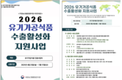 [푸드투데이 = 노태영기자] 국립농산물품질관리원(원장 김철, 이하 농관원)은 국내 유기가공식품의 해외 시장 진출을 돕기 위해 20일부터 2026년 유기가공식품 수출 활성화 지원사업을 추진한다고 밝혔다. 해외 시장 진출에 어려움을 겪는 유기가공식품 인증사업자들에게 수출 준비부터 해외 구매자 연결까지, 맞춤형 지원을 제공해 판로 확대에 기여할 것으로 농관원은 기대하고 있으며, 올해 처음 도입되는 수출 기초 교육 및 맞춤형 상담은 수출 요령부터 사전진단을 통해 기업별 애로사항을 파악하고, 전문가가 1대1 맞춤형 상담을 제공하여 실질적인 도움을 줄 계획이다. 또한, 미국, 유럽연합(EU), 영국, 캐나다, 태국 등 해외 바이어를 대상으로 국내 초청, 현지 상담회 개최 및 온라인 설명회 등 다양한 방식의 수출 상담회를 개최하며, 농관원은 2027년 2월 독일에서 열리는 국제 유기식품 박람회(BIOFACH)에 참여하는 기업들을 위해 상담 창구 제공, 통역 및 외국어 홍보물 제작 등 폭넓게 지원할 계획이다. 특히 상담 후에는 구매자 요청사항 응대, 계약 실무 등 계약성사에 적극 지원하며, 항목별로 개별과 중복으로 신청이 가능하며, 신청을 희망하는 유기가공식품 인증사업자는