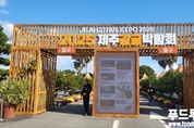 [푸드투데이 = 황인선기자] 20일 오전, 제주 남원읍은 완연한 가을빛을 머금고 있었다. 푸른 하늘 아래 눈을 이고 선 한라산이 선연했고, 그 아래로 주황빛 감귤이 주렁주렁 매달린 귤밭이 펼쳐졌다. 평일임에도 박람회장 입구는 이른 시간부터 관람객들로 붐볐고, 주차장에는 차들이 길게 늘어서 ‘개막 첫날’의 열기를 실감하게 했다. 입구에 들어서면 팜플렛과 함께 1인당 귤 두 개가 무료로 제공된다. 갓 딴 감귤 특유의 새콤달콤함이 방문객들의 발걸음을 한층 가볍게 했다. 감귤 주산지 ‘남원’에서 열리는 전국 유일 감귤 전문 박람회 행사장이 자리한 제주도 서귀포시 남원읍은 우리나라 최초의 감귤나무 재배 지역이자 최대 생산지로, 전체 농가 중 감귤 농가 비중이 압도적으로 높다. 제주도 내 4개의 거점APC(감귤산지유통센터) 중 남원·위미 2개가 이곳에 위치해 ‘제주 감귤 산업의 심장부’로 불린다. 그만큼 이 지역에서 열리는 감귤박람회는 산업·관광·교육·체험을 한데 묶은 국내 유일의 감귤 전문 박람회다. 이날 ‘2025 제주감귤박람회’가 서귀포농업기술센터에서 개막하며 5일간의 일정에 들어갔다. 제주도(도지사 오영훈)와 제주국제감귤박람회조직위원회(위원장 고문삼)가 주관한